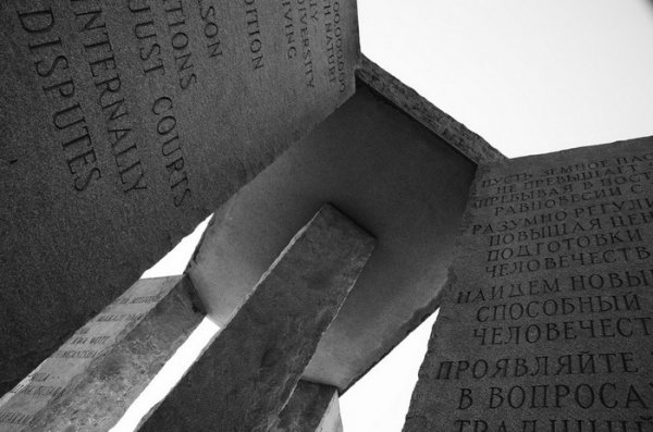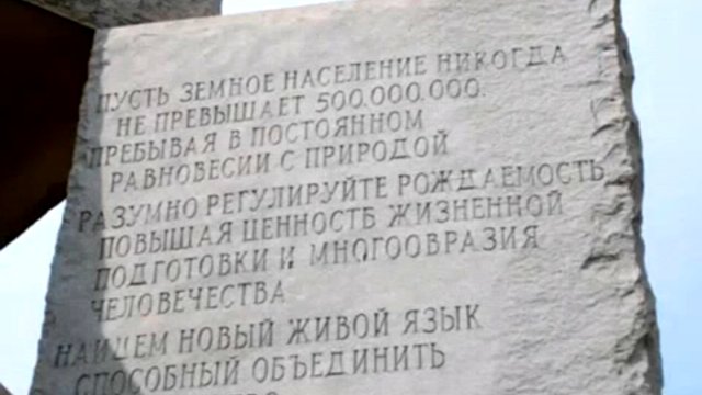 Камни содержат гравировки на восьми языках - английском, испанском, суахили, хинди, иврите, арабском, китайском и русском - и каждая заключает в себе десять "новых" заповедей для "Эры Разума". Камни также установлены с учетом некоторых астрономических соображений.
