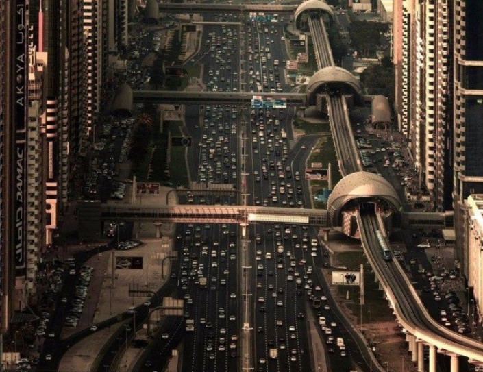 Это не фильм "Пятый элемент" - это обычное метро и обычная дорога в Дубаи