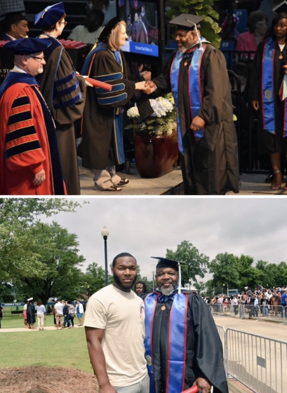71-летний выпускник с сыновьями после получения диплома о высшем образовании.