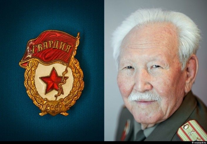 "Мы с земляками-казахами всегда вместе держались. И на коротком отдыхе и на поле боя... Первые потери были для нас очень тяжелыми - тяжело нам терять своих! Вот он, упал земляк: ранен, стонет или погиб! Мы к нему с криком "Баурым! Вставай, держись, прорвемся..." А фашист на голоса наши ориентировался... и пулеметной очередью косил всех, кто на помощь к землякам рвался. Тогда командир приказал нам не подавать голоса.. Но молчишь ты или нет, когда умирает твой друг, душа все равно громко плачет..."