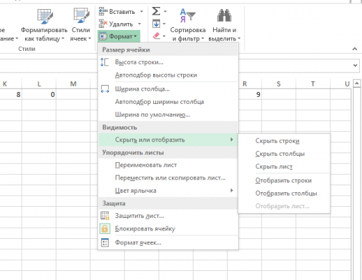 Как скрывать информацию в Excel