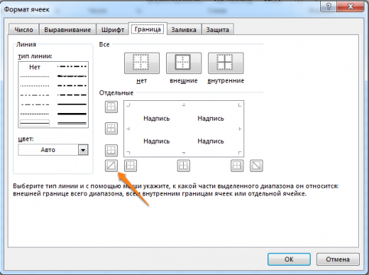 Диагональная линия в ячейках