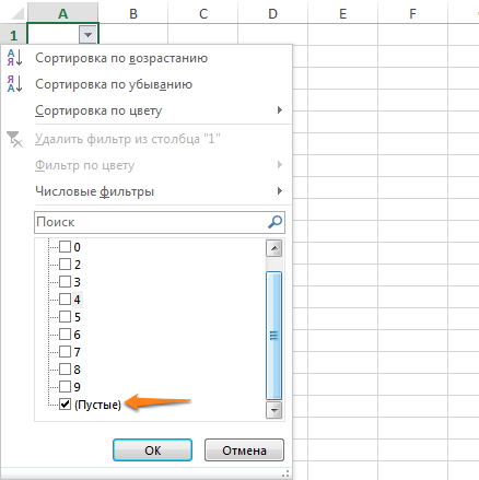 Пустые ячейки - это бич Excel. Иногда они появляются просто из ниоткуда. Чтобы избавиться от них всех за один раз, выделите нужный столбец, перейдите на вкладку "Данные" и нажмите "Фильтр". Над каждым столбцом появится стрелка, направленная вниз. Нажав на нее, вы попадете в меню, которое поможет избавиться от пустых полей.
