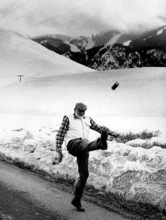 Эрнест Хемингуэй пинает жестяную банку.