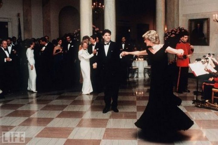 Принцесса Диана и Джон Траволта танцуют в Белом Доме в 1985 году.