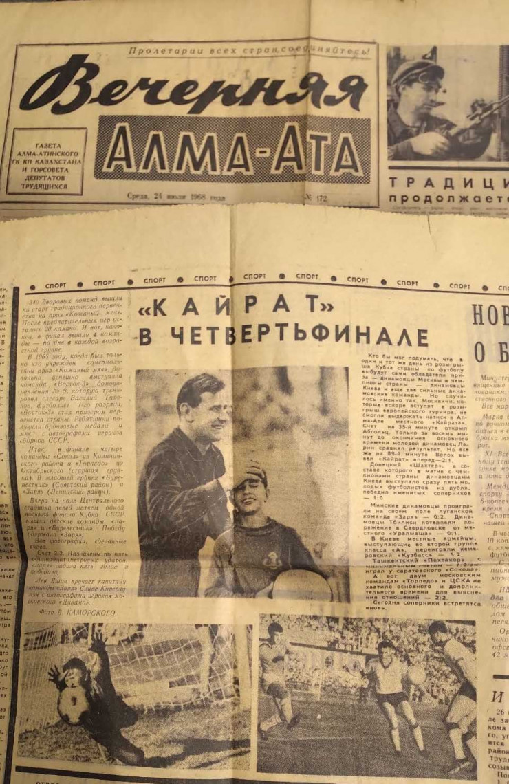 "А в спорте тот, кто хочет добиться убедительных побед, обязан пытаться прыгнуть выше головы", - говорил культовый советский вратарь Лев Яшин. TengriMIX расскажет, как дворовая команда юных алматинцев открывала своим матчем Кубок СССР по футболу, а 14-летний капитан команды получил кожаный мяч из рук легендарного советского вратаря.