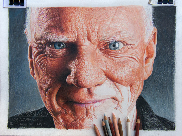 Аргентинский художник Нестор Канаварро (Nestor Canavarro) из Буэнос-Айреса любит писать портреты знаменитостей. В основном он рисует кинодеятелей и музыкантов. В его портфолио превалирует мужской образ, хотя среди работ есть женщины и дети.