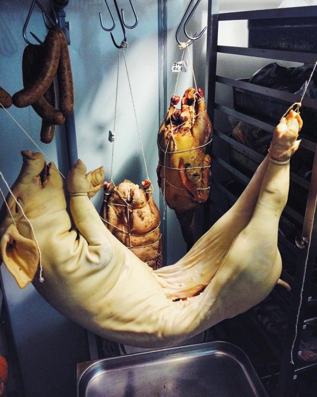 Немногословный Прошенков выкладывает фотографии с кухни ресторана. И это приятная лента для любителей самого Saxona. К слову, Saxon+Parole - сетка из двух ресторанов, один которых находится в Нью-Йорке, а второй - в Москве, в самой лакомой локации - на Патриарших. Чудесное место с хорошей кухней и хорошим баром. Ну, как не следить за его поваром? Любимая фишка Александра - живописные мясные тушки.