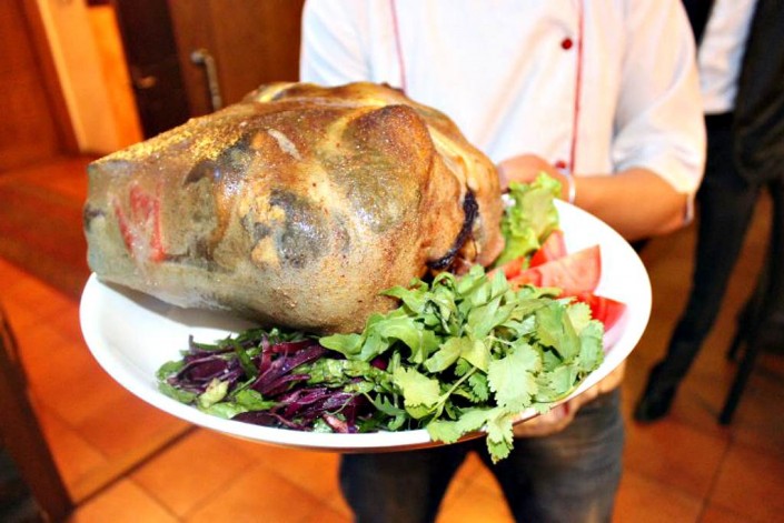 Это блюдо для особых гостей. Считается хорошей альтернативой обычному бешбармаку. Готовится из бараньего мяса в бараньем же желудке. Свое название берет от названия составных частей блюда: головы (бас) и желудка (карын). Мясо и предварительно отваренная голова закладываются в желудок и готовятся несколько часов на углях в собственном соку. Можно добавить лук, болгарский перец и картофель. Хватает такого бас-карына на 6 человек.