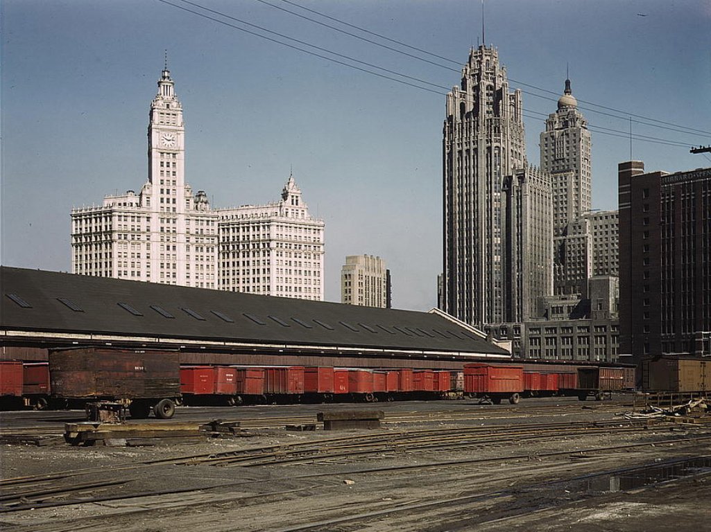 Сортировочная станция в Чикаго, штат Иллинойс, 1942 год. Фотограф Джек Делано