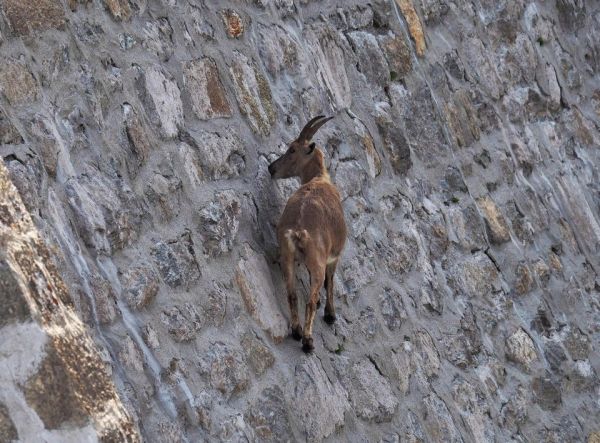 Жительница Италии Федерика Грасси посетила Пьемонт и сделала удивительные снимки альпийских коз, гуляющих по отвесной стене местной плотины, которая была построена еще в 1925 году. По наблюдению женщины, градус наклона дамбы составляет почти 90 градусов, а высота - 49 метров. Однако животным эти цифры оказались безразличны.