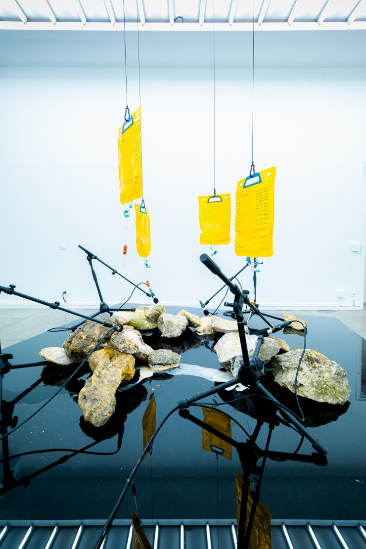Произведение "Круглая ли Земля" было приятно для восприятия, но совсем не цифровое. Жидкая грязь стекала с большого овала на стене.