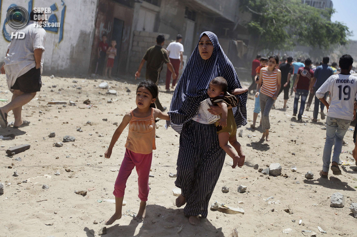 Палестина. Сектор Газа. 9 июля. Местные жители пытаются укрыться от ракет. (REUTERS/Majdi Fathi)
