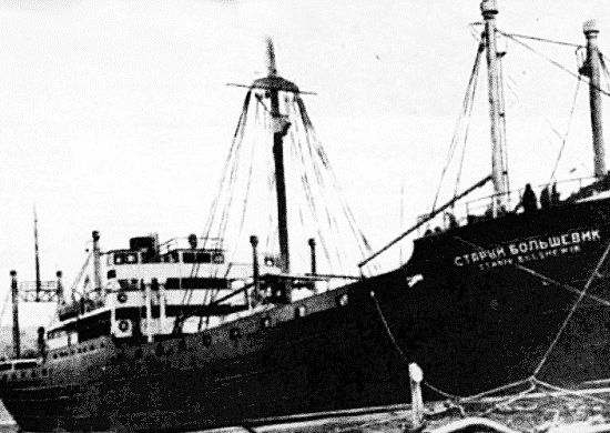 Недалеко от нас шел "Старый большевик". Спикировал на них бомбардировщик, бомба попала на полубак, вспыхнул сильный пожар, а у них в трюмах - взрывчатка. Команда кинулась выбрасывать боезапас, чтобы не взорвался, не дал детонацию. Подошел помочь корвет "Розалис". Вообще, военные корабли действовали бесстрашно, спасали экипажи при очень сильной плотности огня. Второй корвет предложил команде покинуть судно. Когда мы вернулись, узнал, что капитан Афанасьев отказался: не для того, мол, мы такой груз тянули из Бостона! В общем, конвой двинулся дальше без них. А они с пожаром справились и догнали конвой. Англичане не верили своим глазам. По флажной связи флагман конвоя передал, что восхищен мужеством команды", - делился воспоминаниями конвойщик Николай Дитятев.