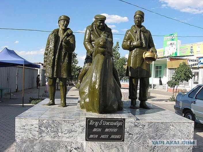 В городе Джамбул (Тараз), который упоминает Василий Алибабаевич Алибаба, установлен памятник "Джентльменам удачи".