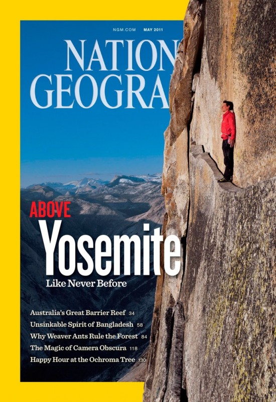 Фотография на обложке журнала National Geographic, где Алекс стоит на узком карнизе Хаф-Доум, полюбилась многим. Кадр, безусловно, передает красоты природы и храбрость молодого человека. Хотя это именно тот момент, когда безумец преодолевал свой страх.