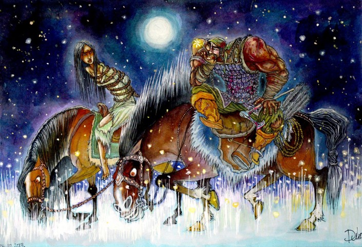 Этническое направление Бейшебаев тоже выбрал неспроста: в детстве он рос в окружении чабанов и табунщиков. "Наверное, это дано мне на генетическом уровне", - сказал он. Во всех персонажах художника невооруженным взглядом видна некая сила. В том числе и в женских образах. Восточные девушки Джум Гунна не покладистые и мягкие, а запросто могут оседлать скакуна или бегать по полям.