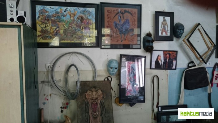 Кстати, Джумгалбек не понимает термина "вдохновение". Когда что-то не получается, он просто проветривает мозги - идет домой пешком или отжимается для улучшения циркуляции крови. К тому же, художник не только пишет картины, но и лепит. По его словам, лепка отлично развивает образное мышление, потому работать легче, "когда видишь своего героя в объеме".