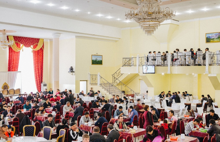 Помещение ресторана большое, светлое и чистое, в стиле сталинского ампира. Официанты работают быстро, не задают лишних вопросов, с момента заказа до подачи блюда проходит не больше 5 минут. Постоянные клиенты сами себе приносят плов.