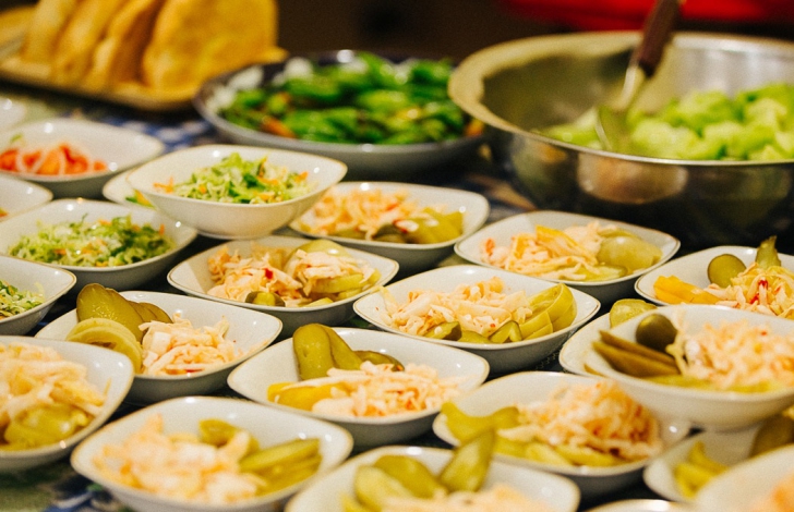 Плов подается с различными соленьями.