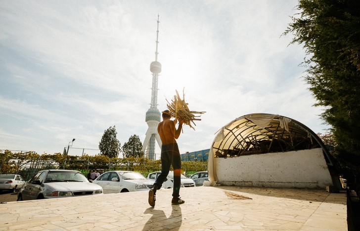 Хусан-ака - мастер приготовления плова по-узбекски или ошпаз - это повар, специализирующийся на приготовлении плова. Плов готовится во дворе на дровах в большом казане, диаметр казана - 1,5 метра. В заведении "Центр плова" работают пятеро поваров, все они мужчины, по традиции женщины не готовят настоящий узбекский плов. Весь Узбекистан разделяется на десять районов, и все они готовят плов по-своему.