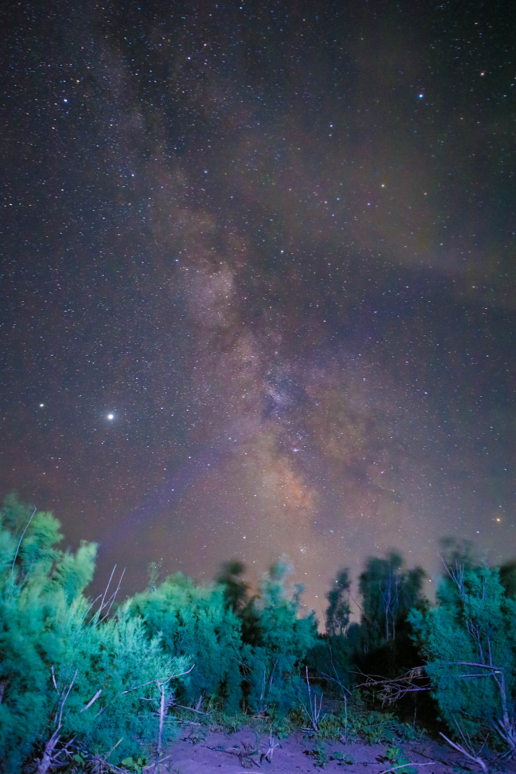 "Есть специальные карты засветки, если взглянуть на них, то за 300-400 километров от Алматы можно найти идеально темное небо. В таком месте я сделал эти снимки, хорошо виден Млечный Путь и мельчайшие звезды", - отметил фотограф.