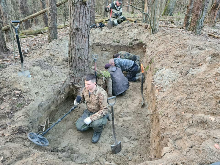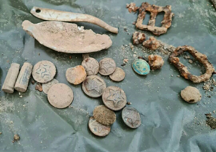 "На самом верху высоты в одной из просадок грунта щуп упирается в кости. Начинаем копать. Пуговицы со звездами подтверждают, что это останки советских воинов. Братская могила найдена!" - сообщается на странице поискового отряда "Совесть" в Instagram.