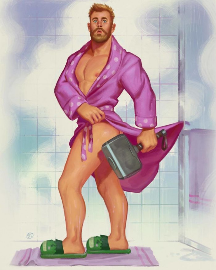 "Я начал посещать выставки и собрания любителей комиксов. Но быстро понял, что мне нечего на них показать. Поэтому у меня и возникла идея проиллюстрировать популярных супергероев-мужчин по примеру художника Джила Элвгрена. Винтажный пинап привлекает тем, что находится на грани комедии и эротики, выглядит достаточно сексуально, чтобы заставить вас покраснеть, и достаточно нелепо, чтобы не воспринимать это всерьез", - говорит художник.