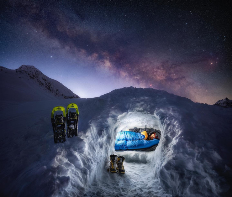 Снимок был сделан в Австрии в короткий промежуток между рассветом, когда Млечный Путь и его краски быстро исчезают, и ночью.