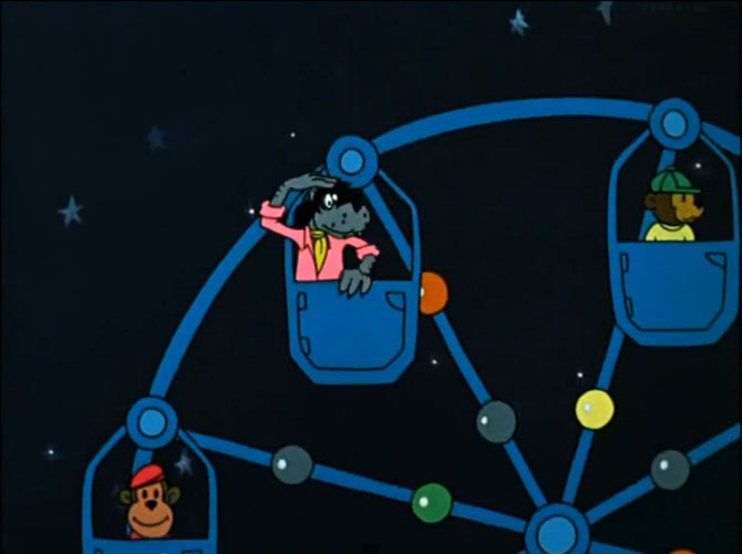 Все события развиваются на фоне советского быта. Вокруг - атмосфера "культурного отдыха" граждан. Звери из "Ну, погоди!" развлекаются в Луна-парке…