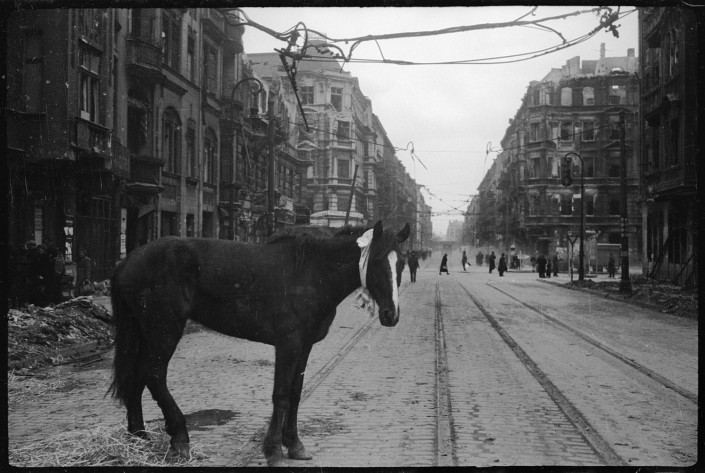 Кадры Второй мировой войны, которые вы еще не видели В 1941-м - аукнулось, в 1945-м - откликнулось. Пригород Берлина, май 1945 года.