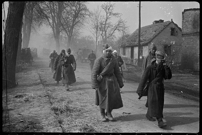 Своим ходом на перевязку. Германия, р-н Зееловских высот. Апрель, 1945 год.