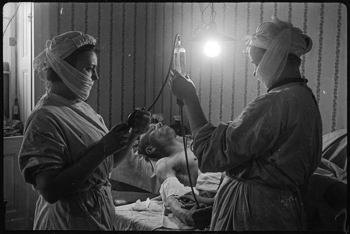 Переливание крови в медпункте. Берлин. Май, 1945.