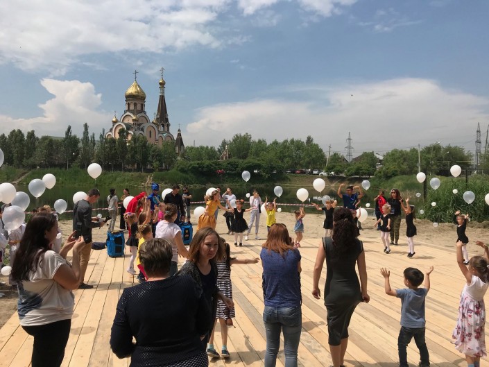 В июне этого года активисты благоустроили северо-восточный берег, устроив асар - древний казахский обычай, согласно которому люди, собравшись вместе, искренне и совершенно безвозмездно выполняют неподъемные для одного человека работы. Вместе они построили сцену наподобие амфитеатра и установили детскую площадку.