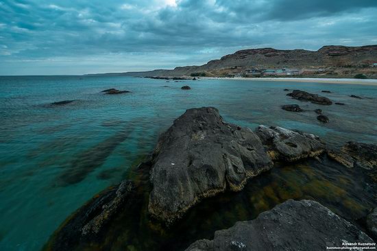 Смотреть на море и небо можно бесконечно - волны, набирающие высоту, и облака, окрашенные солнцем, сливающиеся воедино. Предлагаем вам взглянуть на жемчужину Казахстана - Голубую бухту и насладиться прекрасной панорамой и атмосферой снимков Александра Колесникова.