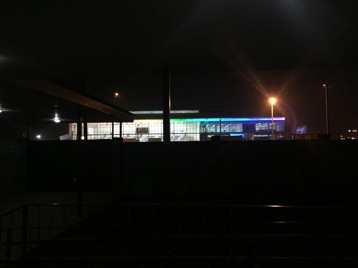 Вид с крыльца и из окон выходит на Дворец спорта.