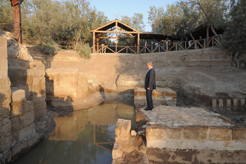 Путин смотрит на место, где, по преданию, Иоанн крестил Иисуса.