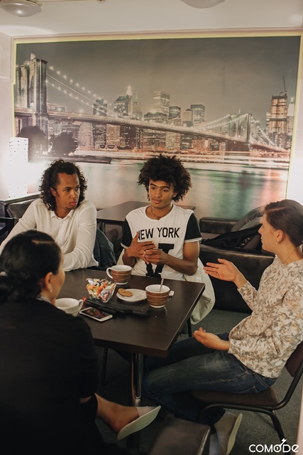 С Айнурой мы знакомы давно. Своими переживаниями и сомнениями она делится, когда я предлагаю ей принять участие в материале о людях с африканскими корнями, которые живут в Казахстане, и рассказать их с Жаником историю. Айнура соглашается, но вместе с тем предлагает провести встречу и познакомить мальчишек - Жанали и Таира - с другими героями моего репортажа. Так дети знакомятся с Марселеном, Даниэлем и Аминатой - молодыми людьми, которые совсем недавно прошли этот непростой путь принятия себя и своей внешности.