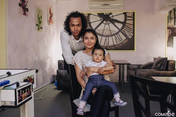 Даниэлю 23 года, он молодежный президент Африканского сообщества в Алматы. Его мама русская, а папа родом из Нигерии, из ее бывшей столицы Лагоса. Он профессиональный музыкант, играет на фортепиано, недавно выучился играть на домбре. На встречу Даниэль пришел вместе с женой Айданой и маленьким курчавым чудом по имени Адель. Со своей супругой молодой человек познакомился на Арбате. "Проходил мимо, увидел девушку во всем белом, я тоже был во всем белом, так и познакомились. Поженились мы примерно через три года". Задаю несколько бестактный вопрос и получаю ожидаемый ответ: да, родители Айданы сначала были против, особенно отец. Ради своей любимой Даниэль выучил казахский, и только после этого сердце будущего тестя начало оттаивать.