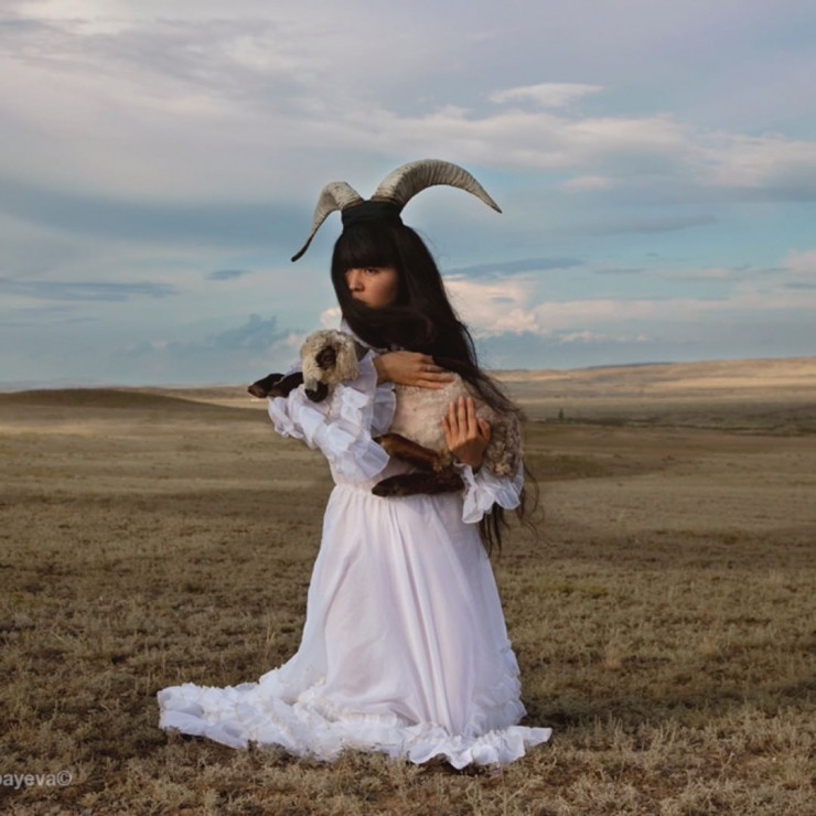 "Мадонна Великой степи", 2010 год. Художественный принт, проект из фильма "Молоко для ягнят". Пересмотр образа архетипа материнства и его современной позиции. ©Алмагуль Менлибаева