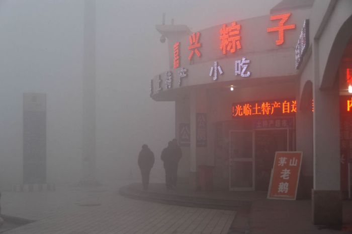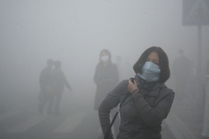 Смог в Пекине. Содержание мелких частиц в воздухе в 40 раз превышает международные нормы безопасности.