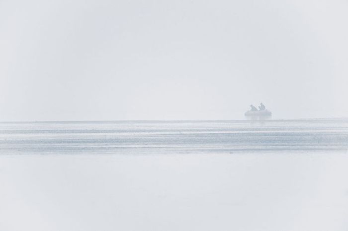 Густой смог над озером возле города Тяньцзинь.