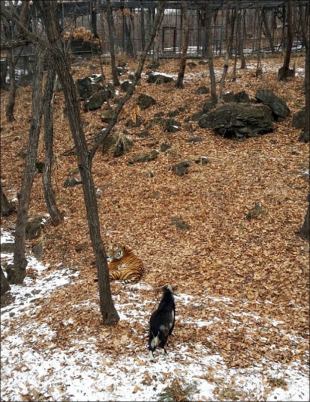 Удивительный случай произошел в сафари-парке в Шкотовском районе Приморья (Россия). Амурский тигр по кличке Амур отказался есть живую добычу, которую работники парка приготовили хищнику, - козла Тимура.