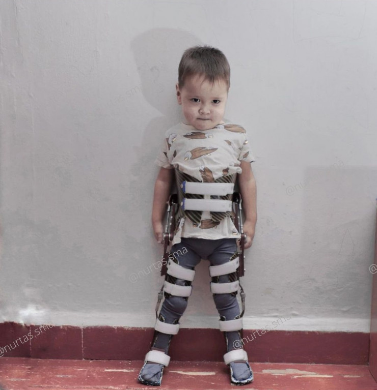 Трехлетний Нуртас страдает СМА второго типа, поэтому он не ходит, а может только сидеть и немного ползать. Мама ребенка Гаухар Кыдырбекова уже год в Instagram занимается сбором средств на препарат Zolgensma, который стоит 1,1 миллиарда тенге (2,3 миллиона долларов).