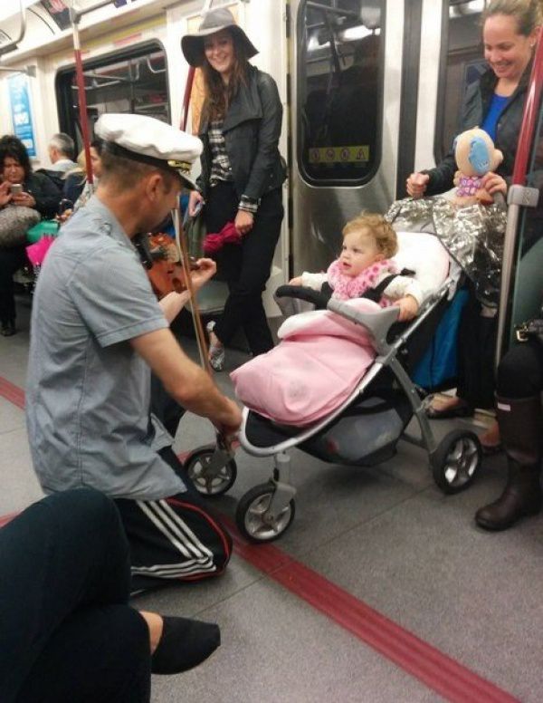 Мужчина в метро увидел плачущую девочку и стал играть для нее на скрипке, чтобы успокоить.
