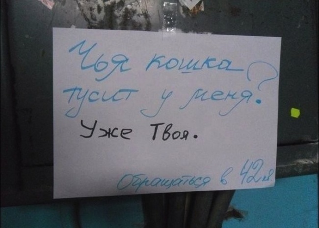 В каждом доме, дворе или подъезде обязательно найдутся люди, которые делают жизнь окружающих людей пусть немного, но веселее. Они не заканчивали художественных академий, но это не мешает им творить, писать шедевральные объявления, разрисовывать стены и бороться за справедливость. В этом материале AdMe.ru выбрал лучшее из того, что было придумано самыми обычными людьми в марте. Наслаждайтесь и умиляйтесь!