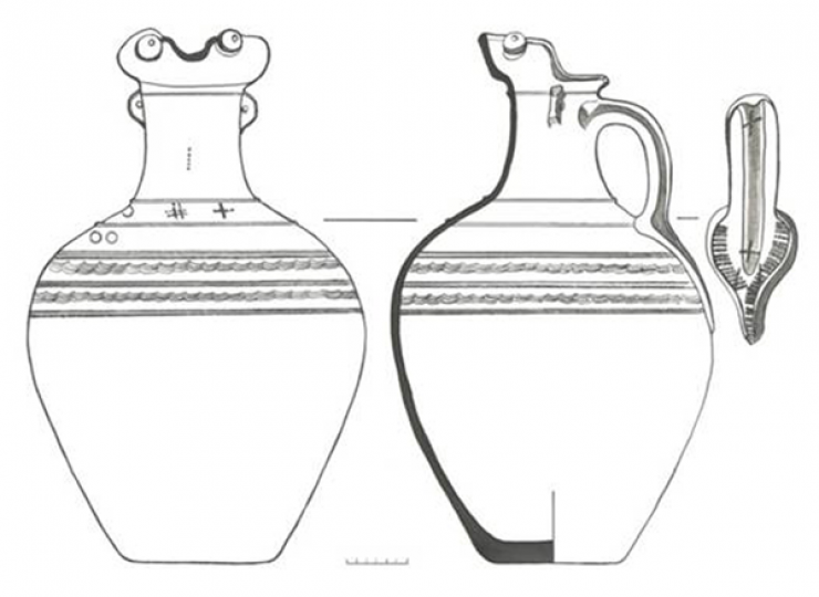 Интерес археологов вызвали также остатки керамического кувшина грушевидной формы с изображением капюшона кобры и креста. По словам археологов, кобра символизирует изначальную инстинктивную природу, прилив жизненной силы и потенциальную энергию, воодушевляющий дух. Это посредник между небом и землей, между землей и подземным миром. Змея ассоциируется с небом, землей, водой и в особенности с Космическим Деревом. В древности со змеей связывали идею непрерывности жизни, постоянного ее "оживления" после смерти на примере сбрасывания кожи, идею бессмертия и неиссякаемого плодородия.
