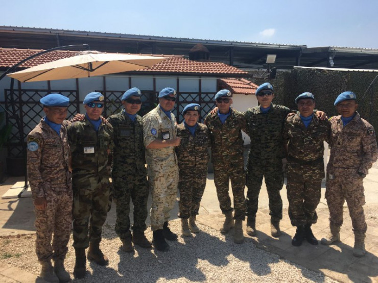 С коллегами из штаба перед вручением медалей за вклад в миротворчество, UNP 2-3, Шама, Ливан, 2019 год