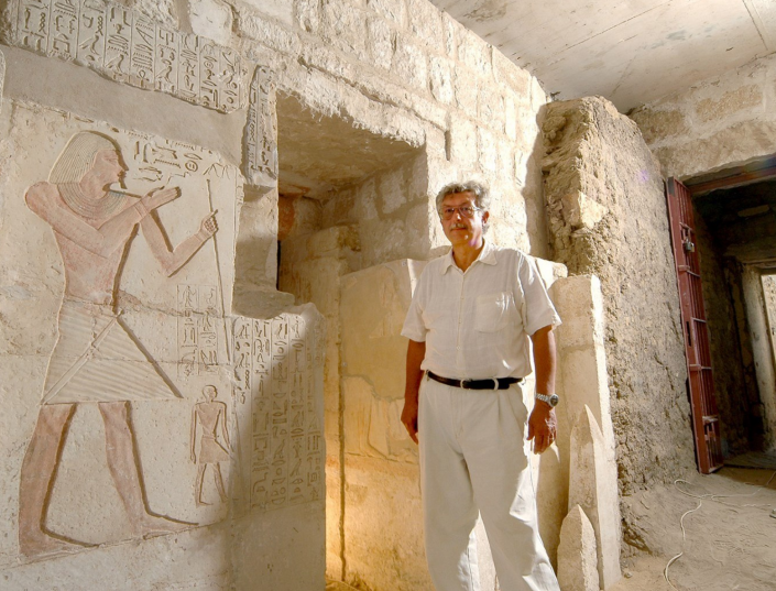 Бржетислав Вахала у входа в погребальную комнату. Фото: Чешский институт египтологии FF UK