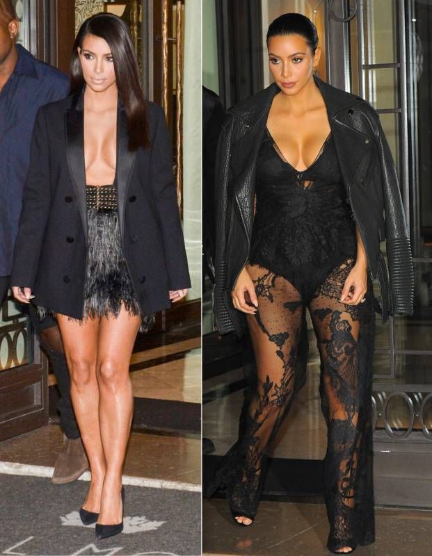 Во время Недели моды в Париже дива ежедневно меняла наряды от ведущих люксовых марок - Balmain, Givenchy, Lanvin, Maison Martin Margiela, заставляя модных критиков начинать свои заметки словами: "Ладно, Ким, ты победила, у меня нет слов". Особенный ажиотаж вызвали ее выходы в юбке из перьев марабу и жакете Lanvin на голое тело, а также в полупрозрачном комбинезоне Givenchy.